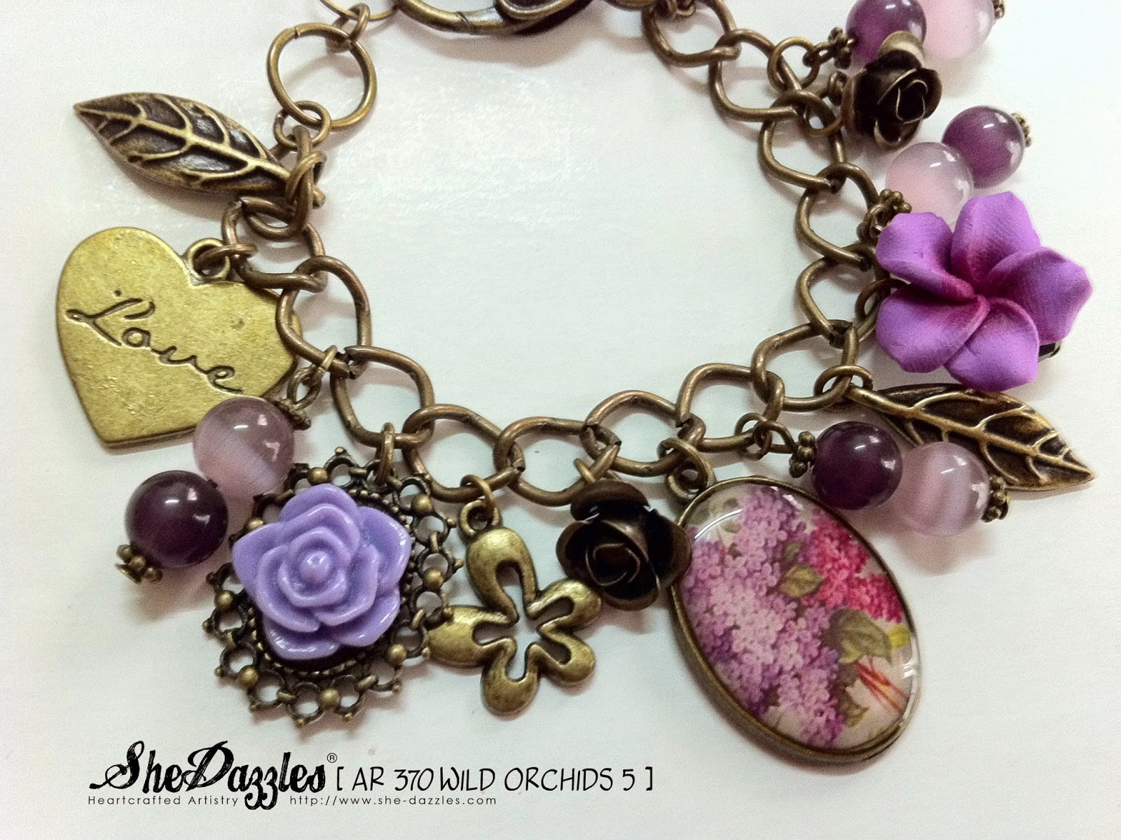 Materials : Brass plated chain and toggle clasp, handmade pendant charms, cats eye beads, clay flower charm, resin cabochons, and metal plated charms